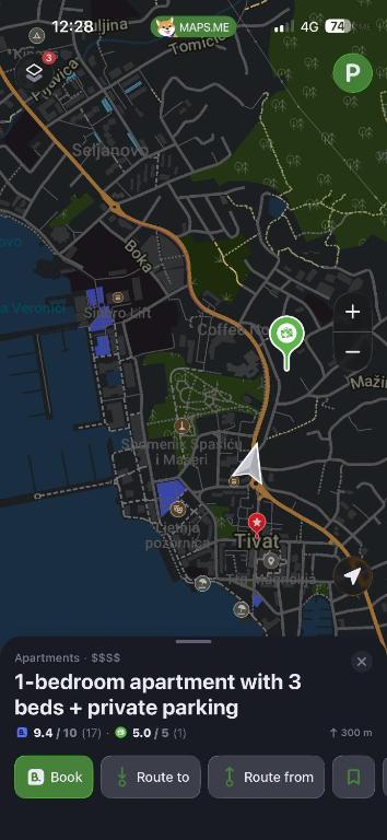 Guests can get from Tivat Airport to 1-bedroom apartment with 3 beds + private parking in approximately 5 minutes by car.