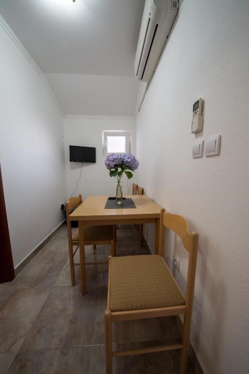 This air-conditioned apartment features a furnished balcony, a TV and a kitchenette with a dining area.