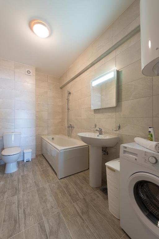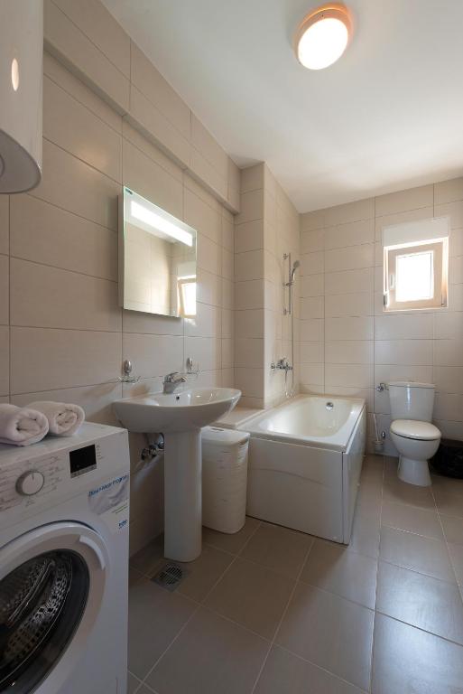 Featuring a private entrance, this air-conditioned apartment is consisted of of 1 living room, 2 separate bedrooms and 2 bathrooms with a bath and a shower. In the well-fitted kitchen, guests will find a stovetop, a refrigerator, a dishwasher and kitchenware. The spacious apartment offers a washing machine, soundproof walls, a seating area, a flat-screen TV with cable channels, as well as sea views. The unit offers 3 beds.