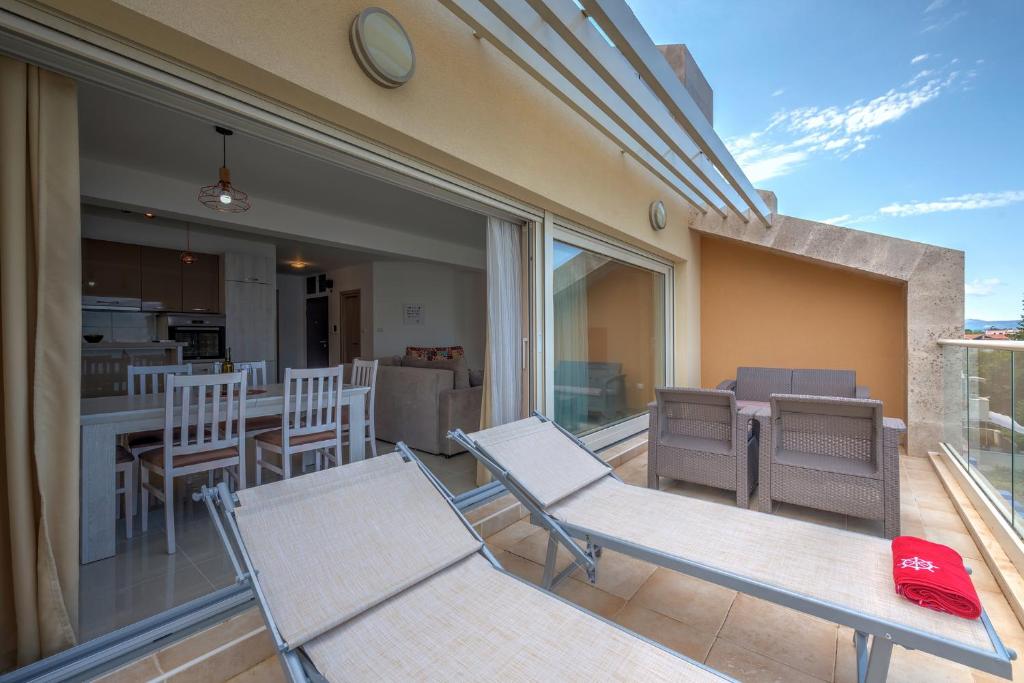 Balcony, Terrace, Outdoor furniture, Outdoor dining area